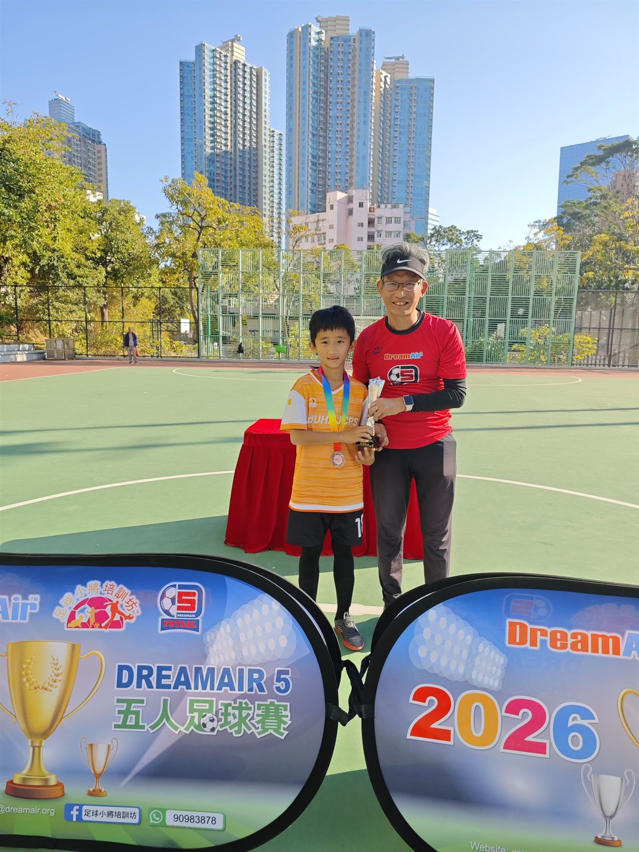 恭喜本校足球隊於1月11日獲得DreamAir5「五人足球賽2026」-U10組賽事季軍,4D班楊瀚森同學同時獲得「最佳防守球員」。雖然這次比賽中有許多球員實戰經驗尚淺,但在較有經驗的球員的帶領下,大家皆得到了寶貴的比賽體驗。期望每位球員均日益進步,再創佳績!