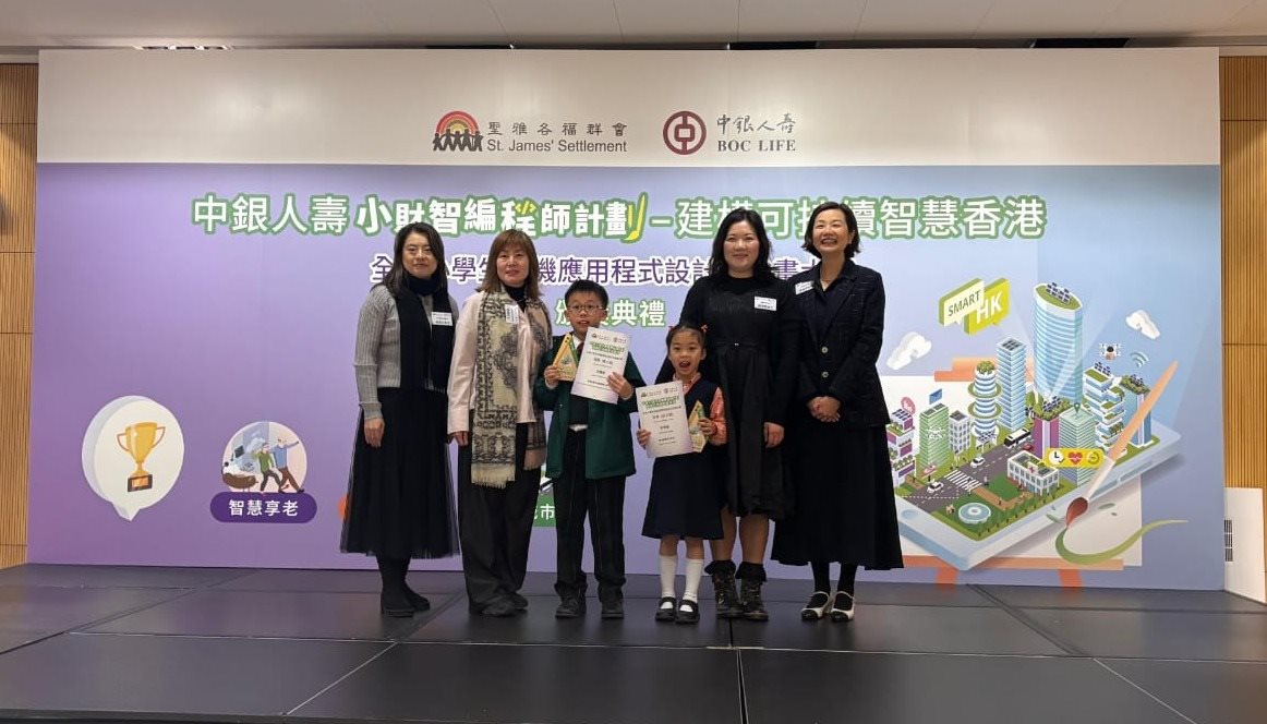 恭賀5D班呂錦泉同學於中銀人壽及聖雅各福群會合辦全港小學生手機應用程式設計大賽中獲取冠軍,6C班陳彥瑜同學獲得優異獎。