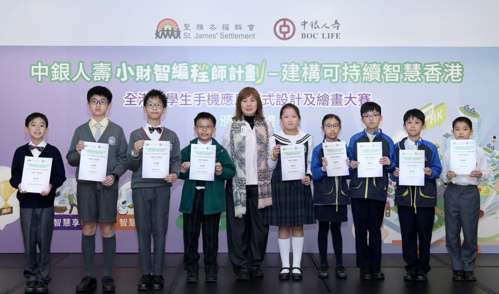 恭賀本校5A班鍾樂悠同學、5B班陳靖堯同學、5C班鍾迪文同學、5C班麥晉廷同學及5C班吳洛鋒同學,於2026年1月24日獲得「智慧未來・共創香港」AI x STEAM+01小學組「特選一等獎」。
