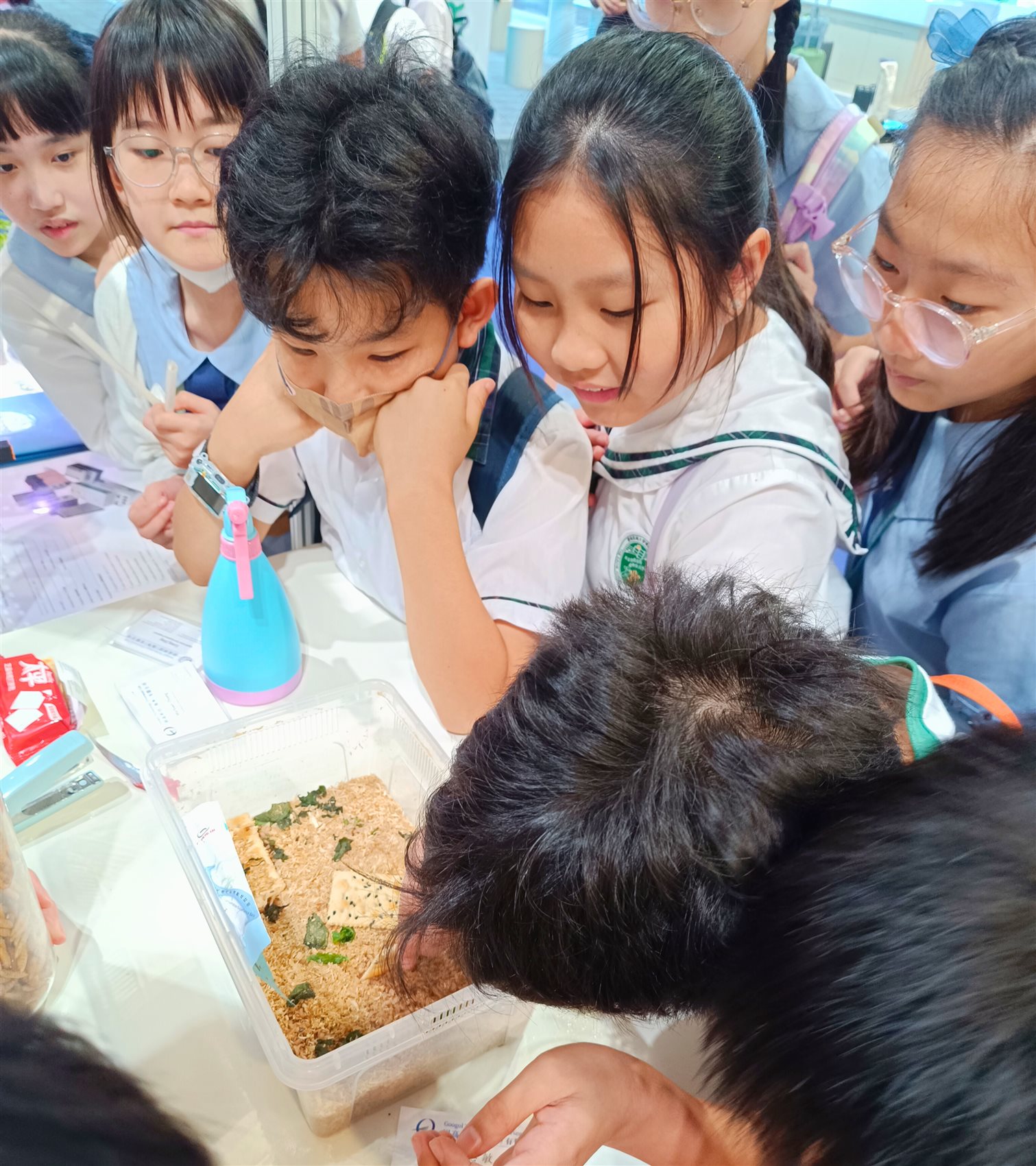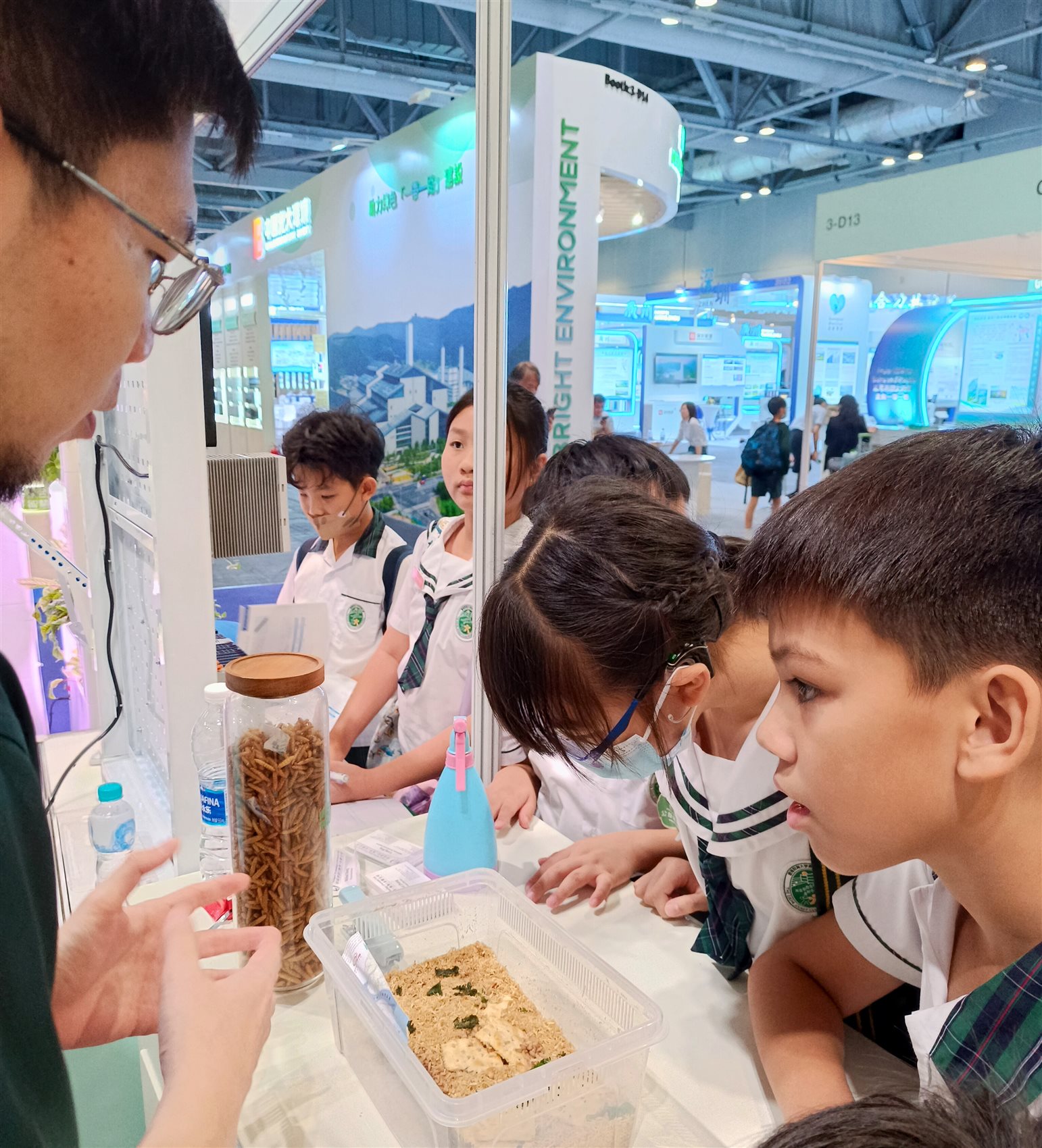 博覽會上,同學們對多個環保攤位深感興趣,例如以黑水虻處理廚餘,將其轉化為肥料和飼料的技術,以及將碎布升級再造為板材和回收桶的創新方法,均讓同學大開眼界。