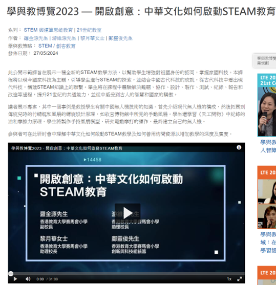 學與教博覽2023 — 開啟創意:中華文化如何啟動STEAM教育