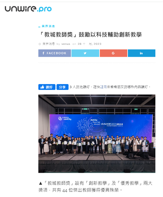 「教城教師獎」鼓勵以科技輔助創新教學