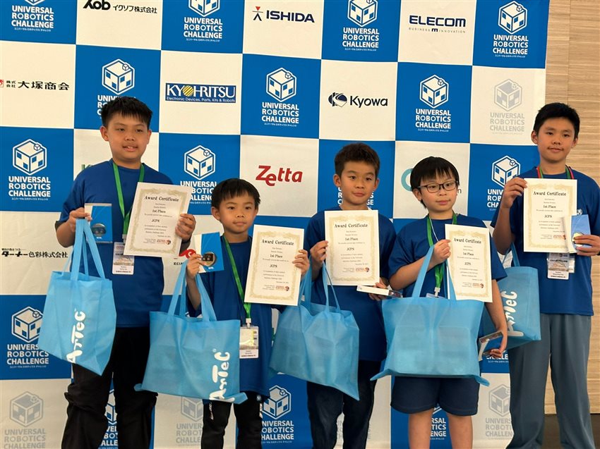 恭賀本校5A潘諾謙、5A薛培之、2024-2025年度畢業生謝皓喆、黃敬澤及薛培迪於2025年9月20日日本大阪Universal Robotics Challenge 2025 國際賽中榮獲冠軍。