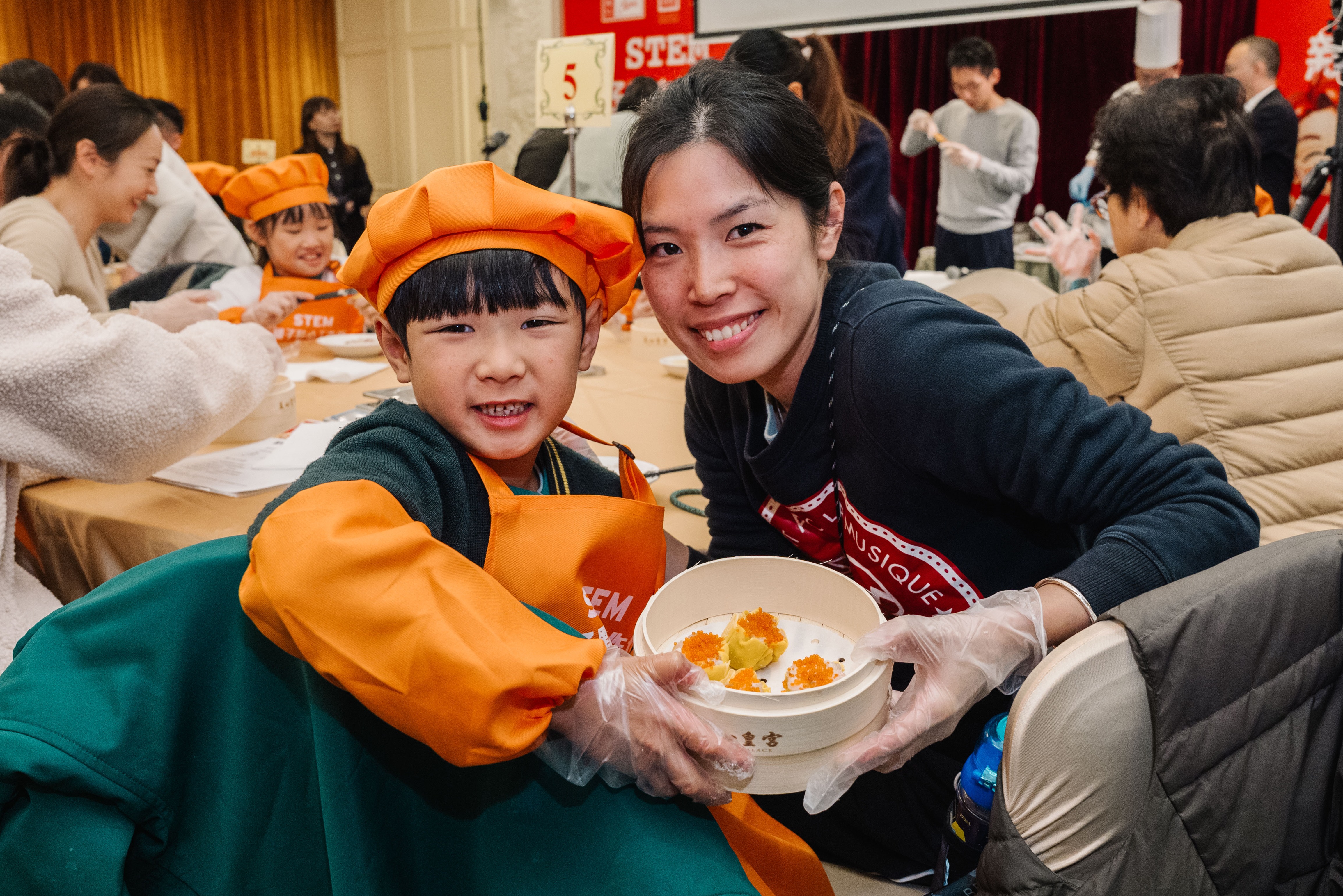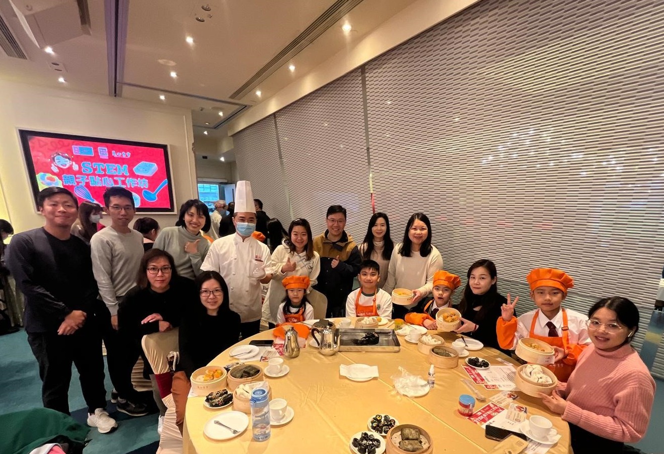 透過「STEM美食文化大探索」,家長與子女一同學習運用具STEM元素的創意工具,應用於美食製作與資源循環。活動由資深廚師帶領親子製作中國傳統點心(蟹籽燒賣、芝麻卷),體驗傳統美食的製作技藝,其後大家更可共享茶點,樂聚天倫,享受温馨快樂的親子時光。