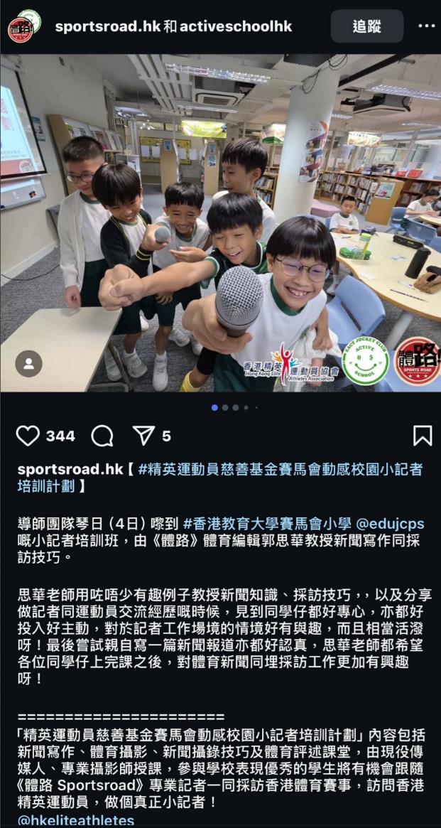 精英運動員慈善基金賽馬會動感校園小記者培訓計劃