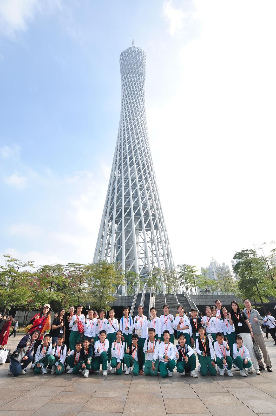 抵達後,同學們首先前往廣州地標「小蠻腰」(廣州塔)參觀,在433.2米高的平台上俯瞰珠江孕育的省會羊城。